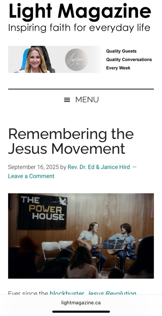 September 16, 2025 by edhird Leave a comment Remembering the Jesus Movement Click to view the Light Magazine article Share this:Share Click to share on Facebook (Opens in new window) Facebook Click to share on X (Opens in new window) X Click to email a link to a friend (Opens in new window) Email Click to share on LinkedIn (Opens in new window) LinkedIn Click to share on Pinterest (Opens in new window) Pinterest Like Loading...