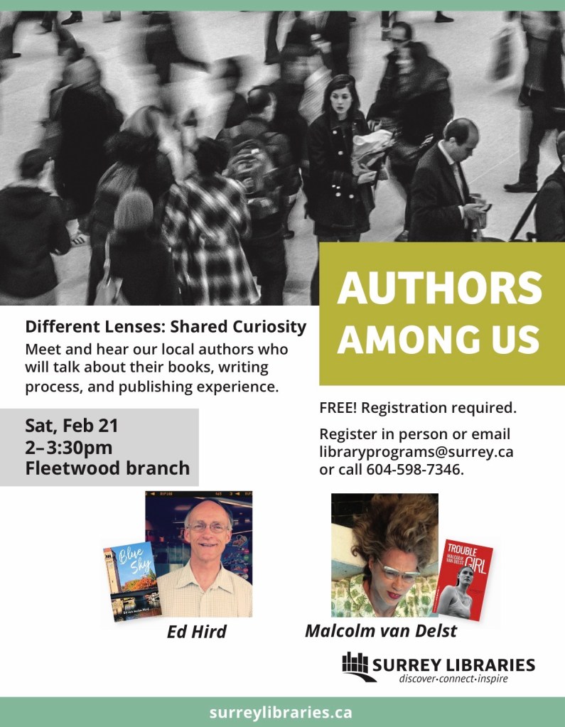 We (my wife Janice and I, my son Mark, and grandson writer Aaron (age 12) had a delightful time at Fleetwood Library in Surrey where the Public Library invited us for the first time ever to be presenters at a ‘Authors Among You’ event. Our son Mark did a dramatic book reading from our Blue Sky novel. The event was almost cancelled because only two had preregistered, so we asked our friends to register, saving the event. Around 15 to 20 attending, many as dropins. A few were Christians. Many were wannabe authors, looking for advice on how to get published. We got to be salt and light in a complicated context. We were allowed to sell our seven different books at a book table.