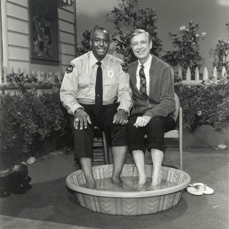 “In 1968, several months after Dr. Martin Luther King, Jr. had been assassinated, Mister (Fred) Rogers quietly did something at that time that was quite unthinkable – he not only hired a black man to take on a regular role in his children’s television program, “Mister Rogers’ Neighborhood” – and asked him to play a police officer. He would also regularly invite Officer Clemmons to cool his feet in the same pool – together.