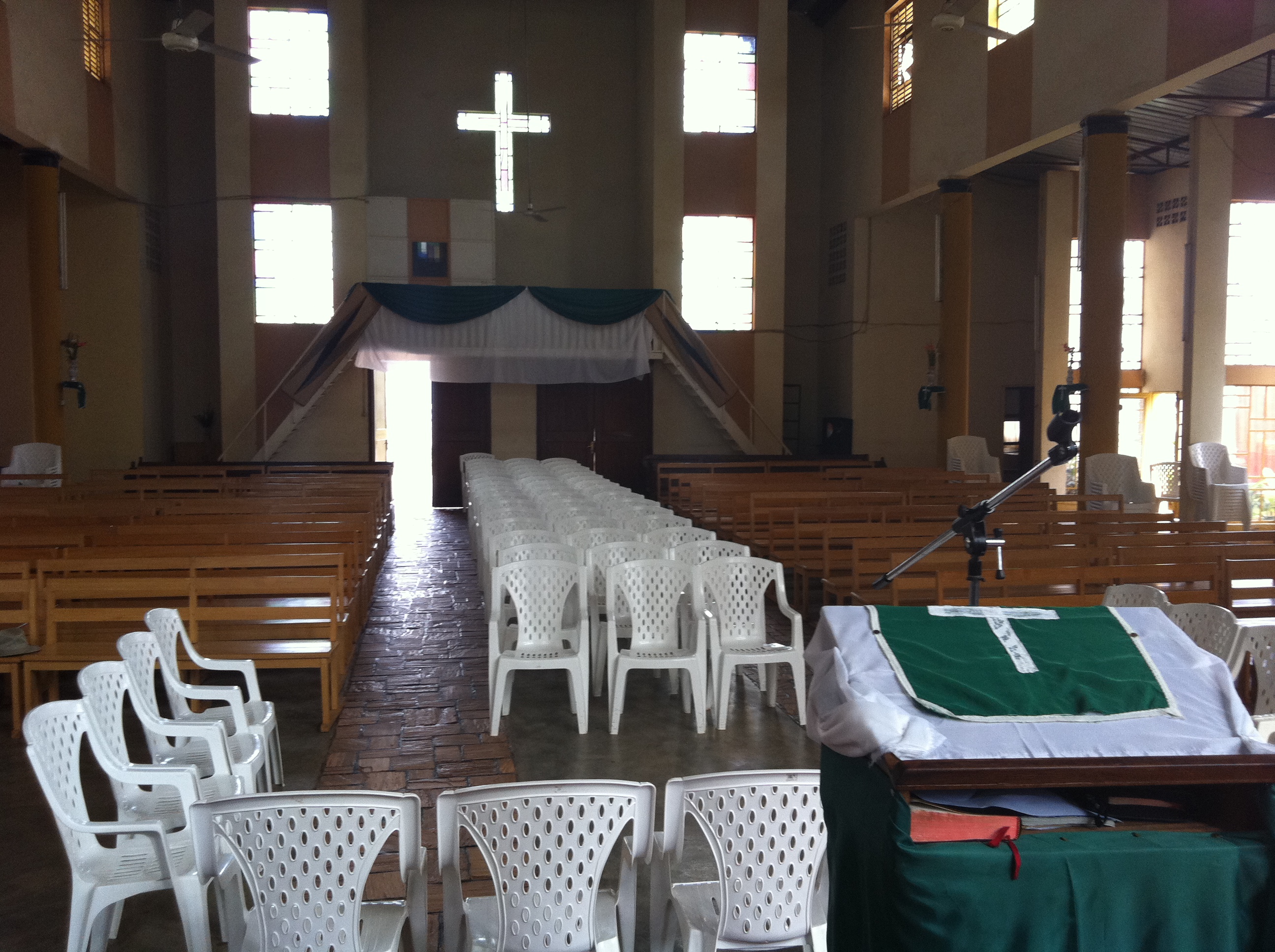 This is a view of the choir from the back of the Kigeme Cathedral.